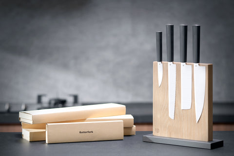 Butterfork 4-Piece Purest Knife Set With Stand, Modern Knife Set for Professional and Home Chef, Light Grey