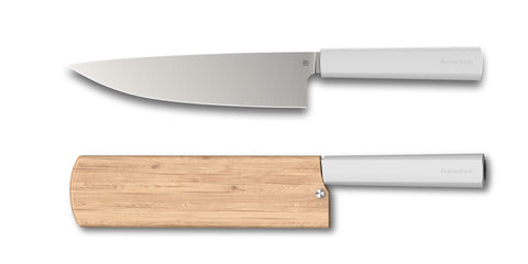 Butterfork Purest 8” Chef's Knife with Oak Sheath, AR-RPM9 Stainless Steel, Replaceable ABS Handle, Light Grey