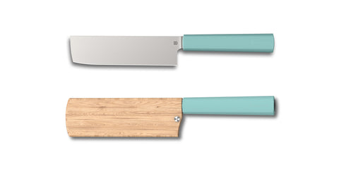 Butterfork Purest 6.2'' Nakiri Knife with Oak Sheath, AR-RPM9 Stainless Steel, Replaceable ABS Handle, Turquoise Green