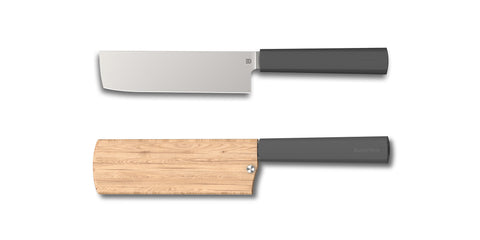 Butterfork Purest 6.2'' Nakiri Knife with Oak Sheath, AR-RPM9 Stainless Steel, Replaceable ABS Handle, Dark Grey